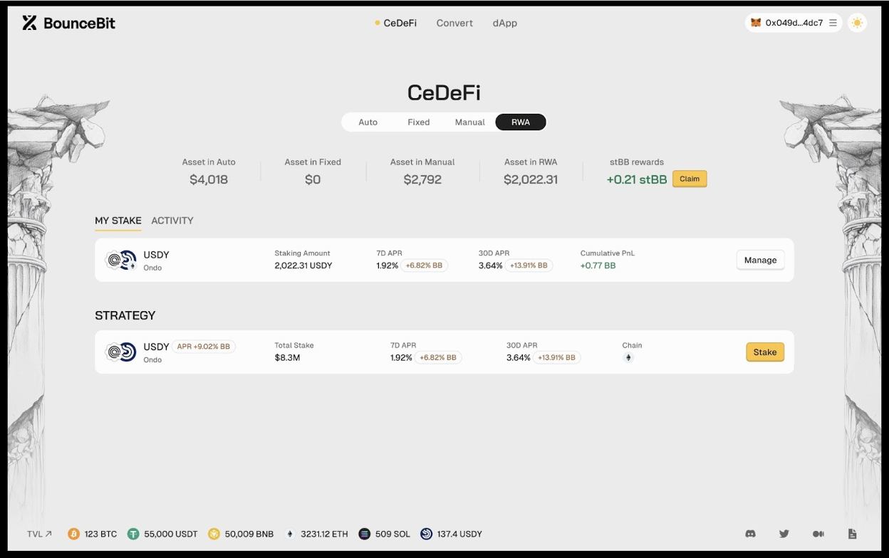 BounceBit Integrates USDY as First Tokenized RWA on CeDeFi V2
