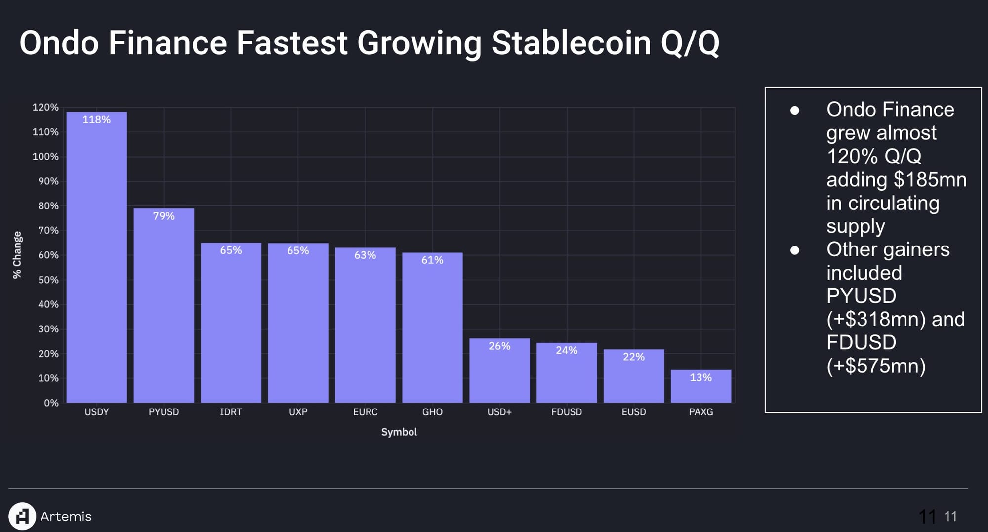 - 📊 Artemis Research: USDY the Fastest Growing Comparable Asset in Q3 2024