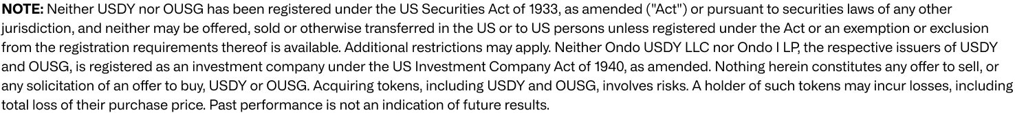 While these innovations were a great first step, access to OUSG was still limited to high net-worth and institutional investors. This is why we then launched USDY, the first freely transferable yieldcoin, designed to be accessible to retail investors outside the US.